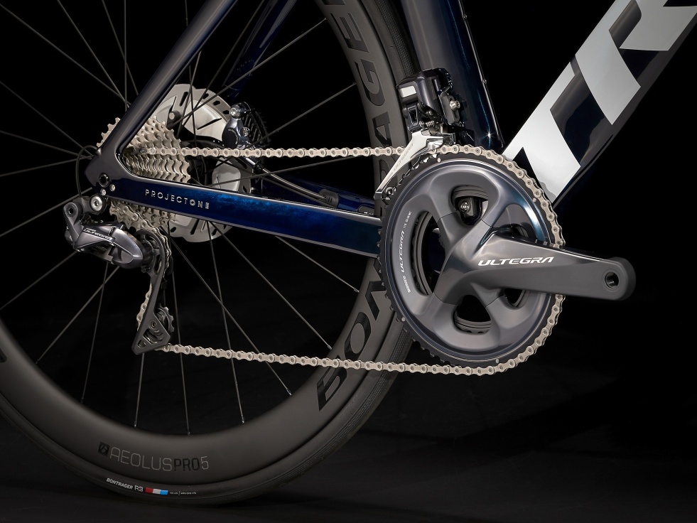 Náš nejlehčí rám z materiálu OCLV Carbon řady 800 s aerodynamickým profilem Kammtail Virtual Foil, nastavitelným prvkem IsoSpeed na horní trubce pohlcujícím vibrace a skrytým vedením kabeláže. Dál ještě elektronické řazení Shimano Ultegra Di2 2x11, hydraulické kotoučové brzdy s úchyty Flat Mount, karbonová kola Bontrager Aeolus Pro 5 připravená na bezdušový systém a nastavitelná aerodynamická řídítka a představec.
