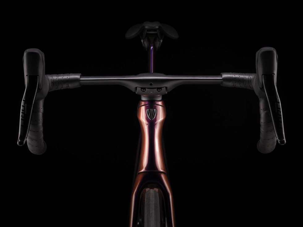 Lehký karbonový rám OCLV řady 700 s aerodynamickým profilem Kammtail Virtual Foil a prvkem IsoSpeed na horní trubce, který vyhlazuje nerovnosti silnice, celokarbonová vidlice KVF pro kotoučové brzdy, nastavitelná aerodynamická řídítka a představec, bezdrátový elektronický pohon 2x12 SRAM Force eTap AXS, kola Bontrager Aeolus Pro 5 Disc umožňující použití bezdušových plášťů, mikronastavitelný sedlový nástavec Madone a hydraulické kotoučové brzdy SRAM Force s úchytem Flat Mount.