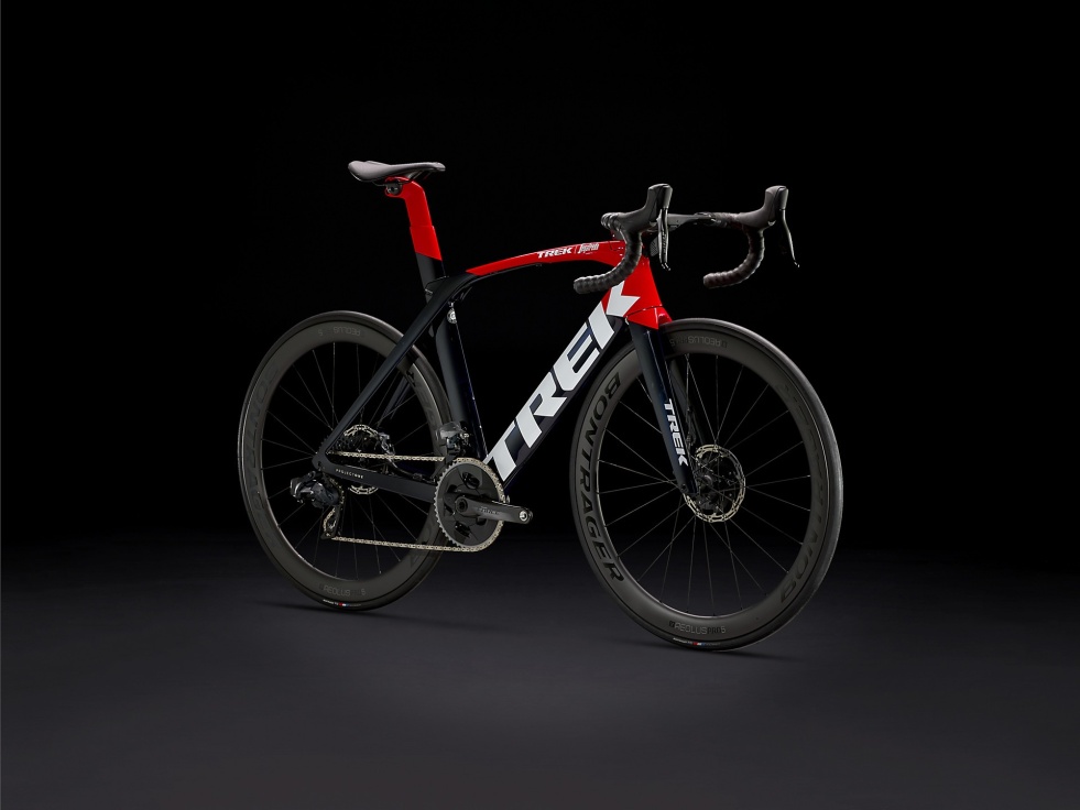 Náš nejlehčí rám z karbonu OCLV řady 800 s aerodynamickým profilem Kammtail Virtual Foil, nastavitelný prvek IsoSpeed na horní trubce pohlcující vibrace a skryté vedení lanek. Bezdrátový elektronický pohon SRAM Force eTap AXS 2x12, měřič výkonu SRAM Force AXS, hydraulické kotoučové brzdy, karbonová kola Bontrager Aeolus Pro 5 připravená na bezdušový systém a nastavitelná aerodynamická řídítka a představec.