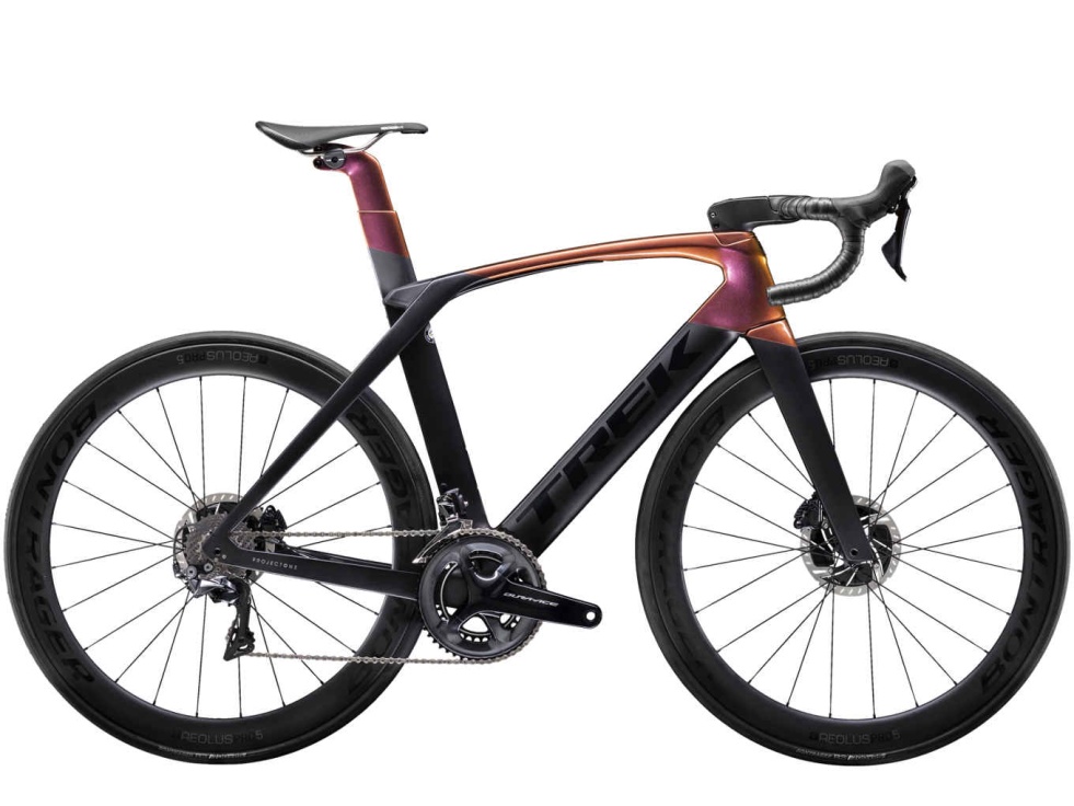 Lehký karbonový rám OCLV řady 700 s aerodynamickým profilem Kammtail Virtual Foil a odpružením IsoSpeed tlumícím vibrace na horní trubce, celokarbonová vidlice Madone KVF pro diskové brzdy, nastavitelná aerodynamická řídítka a představec, řazení 2x11 Shimano Dura-Ace, kola Bontrager Aeolus Pro 5 Disc umožňující použití bezdušových plášťů, mikronastavitelný sedlový nástavec Madone a integrované diskové hydraulické brzdy Shimano Dura-Ace s úchytem Flat Mount.