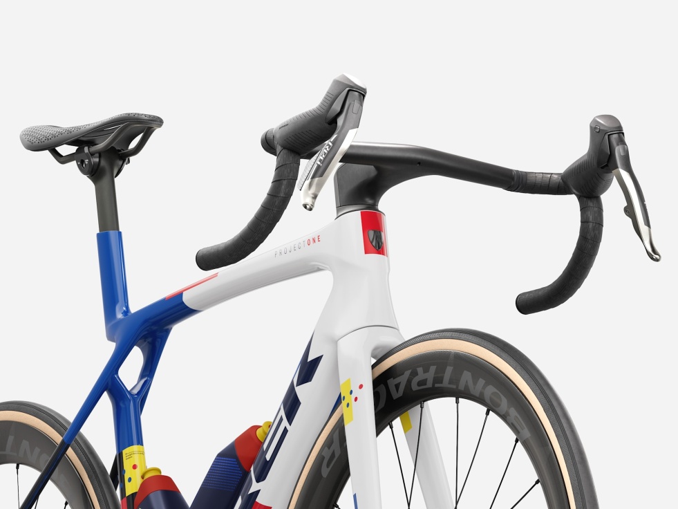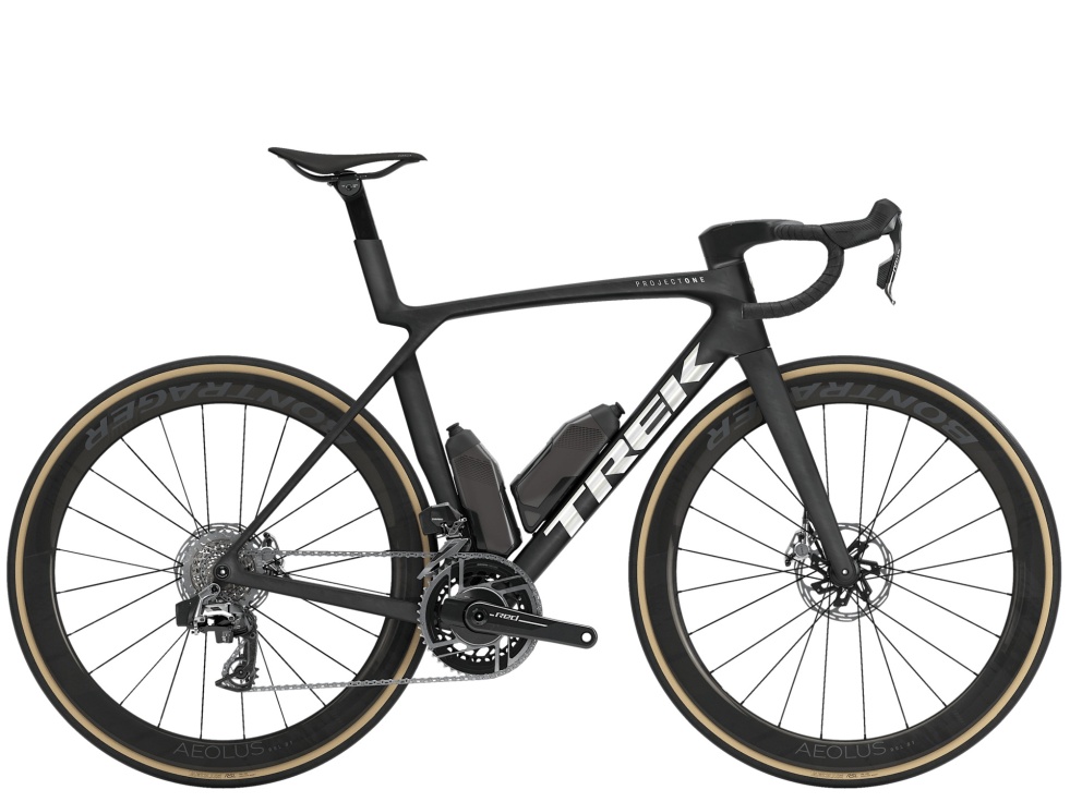 Neuvěřitelně lehký rám z našeho nejlepšího karbonu OCLV řady 900 s aerodynamicky tvarovanými trubkami, technologií IsoFlow zaručující pohodlí a aerodynamickými lahvemi a košíky RSL, které šetří watty. Lehoučký pohon SRAM RED AXS E1 a wattmetr pro trénink s datovým výstupem. Univerzální patka přehazovačky, takže lze náhradu sehnat kdekoli. Stroj doplňují bezdušová karbonová kola Bontrager Aeolus RSL 51 a jednodílná řídítka s představcem Trek Aero RSL.