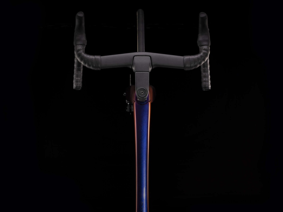 • Oddělená řídítka a představec s aerodynamickou karbonovou čelní deskou umožňují nastavení, aniž by byla negativně ovlivněna aerodynamika.