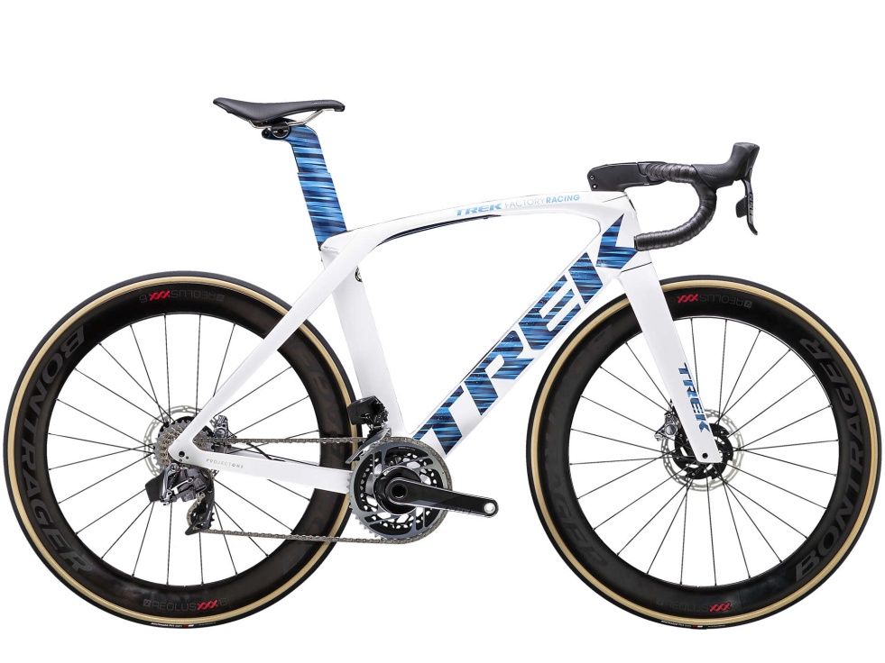 Lehký karbonový rám OCLV řady 700 s aerodynamickým profilem Kammtail Virtual Foil a prvkem IsoSpeed na horní trubce, který vyhlazuje nerovnosti silnice, celokarbonová vidlice KVF, nastavitelná aerodynamická řídítka a představec, bezdrátový elektronický pohon 2x12 SRAM RED eTap AXS, kola Bontrager Aeolus XXX 6 umožňující použití bezdušových plášťů, mikronastavitelný sedlový nástavec Madone a hydraulické kotoučové brzdy RED s úchytem Flat Mount.