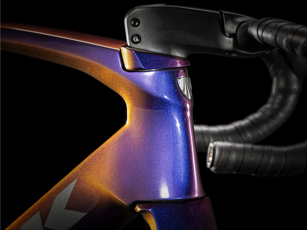 | Vidlice | Celokarbonový Madone KVF, karbonový kónický sloupek, skryté vedení kabeláže, kotouč s úchytem Flat Mount, karbonové patky, pevná osa 12×100 mm. |