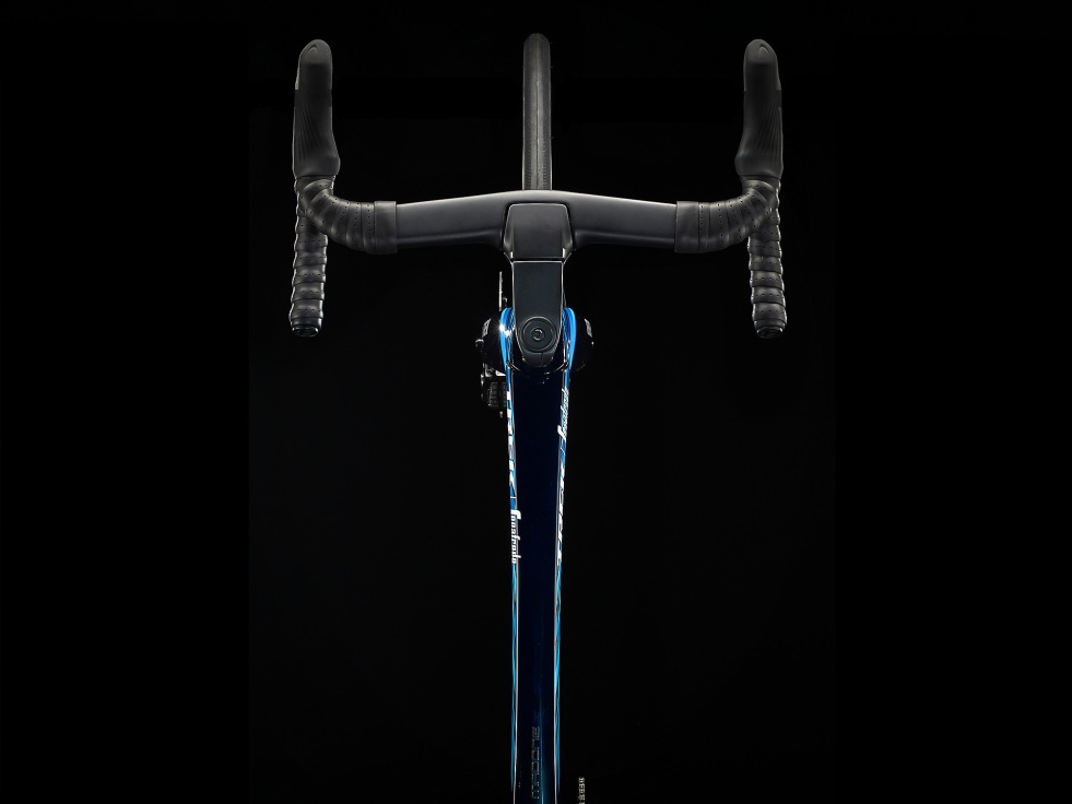 Náš nejlehčí rám z karbonu OCLV řady 800 s aerodynamickým profilem Kammtail Virtual Foil a nastavitelným prvkem IsoSpeed na horní trubce tlumícím vibrace, celokarbonová vidlice KVF na kotoučovou brzdu, 12mm pevné osy, nastavitelná aerodynamická řídítka a představec, zbrusu nové bezdrátové elektronické řazení 2x12 Shimano Dura-Ace Di2, karbonová kola Bontrager Aeolus RSL 51 připravená na bezdušový systém, sedlový nástavec Madone s možností jemného nastavení a kotoučové brzdy Dura-Ace s úchytem Flat Mount.