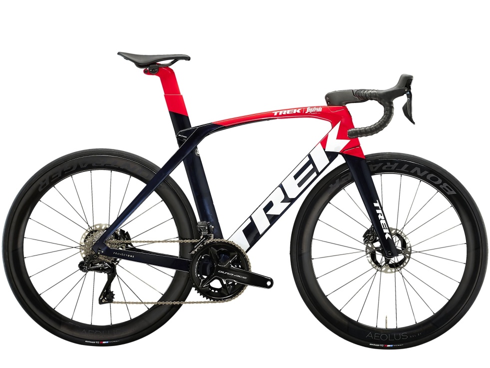 Náš nejlehčí rám z karbonu OCLV řady 800 s aerodynamickým profilem Kammtail Virtual Foil a nastavitelným prvkem IsoSpeed na horní trubce tlumícím vibrace, celokarbonová vidlice KVF na kotoučovou brzdu, 12mm pevné osy, nastavitelná aerodynamická řídítka a představec, zbrusu nové bezdrátové elektronické řazení 2x12 Shimano Dura-Ace Di2, karbonová kola Bontrager Aeolus RSL 51 připravená na bezdušový systém, sedlový nástavec Madone s možností jemného nastavení a kotoučové brzdy Dura-Ace s úchytem Flat Mount.