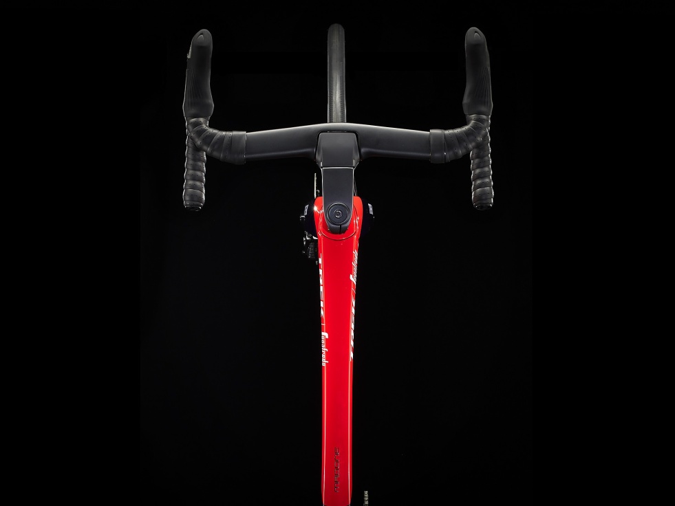 4. Oddělená řídítka a představec s aerodynamickou karbonovou čelní deskou umožňující nastavení, aniž by byla negativně ovlivněna aerodynamika.
