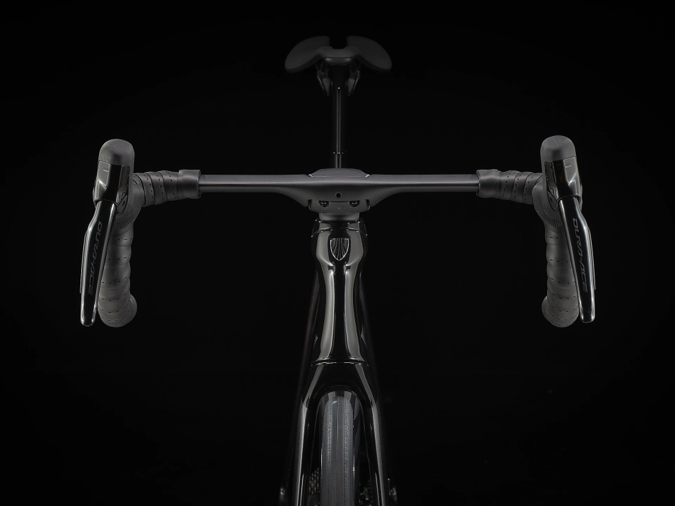 Náš nejlehčí rám z karbonu OCLV řady 800 s aerodynamickým profilem Kammtail Virtual Foil a nastavitelným prvkem IsoSpeed na horní trubce tlumícím vibrace, celokarbonová vidlice KVF na kotoučovou brzdu, 12mm pevné osy, nastavitelná aerodynamická řídítka a představec, zbrusu nové bezdrátové elektronické řazení 2x12 Shimano Dura-Ace Di2, karbonová kola Bontrager Aeolus RSL 51 připravená na bezdušový systém, sedlový nástavec Madone s možností jemného nastavení a kotoučové brzdy Dura-Ace s úchytem Flat Mount.