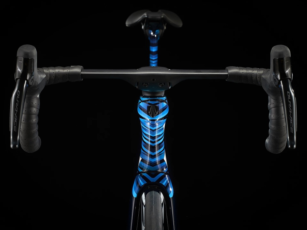 Náš nejlehčí rám z karbonu OCLV řady 800 s aerodynamickým profilem Kammtail Virtual Foil a nastavitelným prvkem IsoSpeed na horní trubce tlumícím vibrace, celokarbonová vidlice KVF na kotoučovou brzdu, 12mm pevné osy, nastavitelná aerodynamická řídítka a představec, zbrusu nové bezdrátové elektronické řazení 2x12 Shimano Dura-Ace Di2, karbonová kola Bontrager Aeolus RSL 51 připravená na bezdušový systém, sedlový nástavec Madone s možností jemného nastavení a kotoučové brzdy Dura-Ace s úchytem Flat Mount.