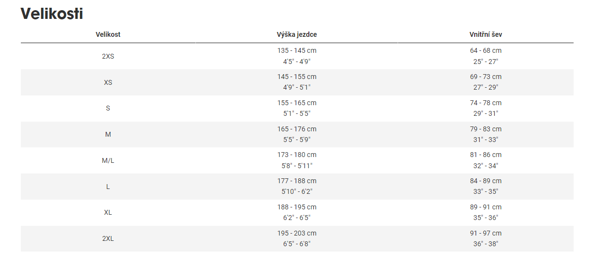 | Klika | : Velikost: XXS , XS FSA Alpha Drive, 30 zubů, délka 160 mm. / Velikost: S , M , ML FSA Alpha Drive, 30 zubů, délka 170 mm. / Velikost: L , XL , XXL FSA Alpha Drive, 30 zubů, délka 175 mm. |