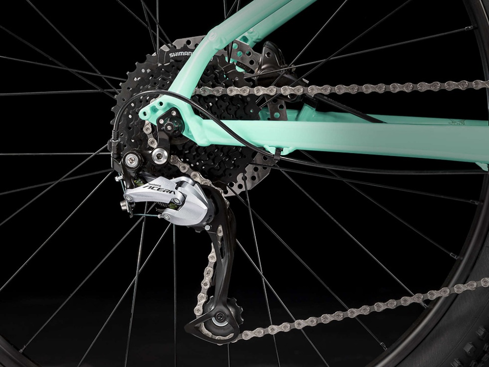 Nejoblíbenější model v řadě Marlin má lehký hliníkový rám Alpha Silver s vnitřním vedením lanek, díky němuž jsou lanka chráněna a kolo získává elegantní vzhled. Dále má velmi kvalitní vidlici RockShox se zamykáním a 100mm zdvihem, řazení 2x9, hydraulické kotoučové brzdy Shimano, nízkoprofilovou přehazovačku Shimano Shadow, která nepřekáží na nerovném povrchu, a dotykové body speciálně navržené pro ženy, jako jsou sedlo, řídítka a gripy.