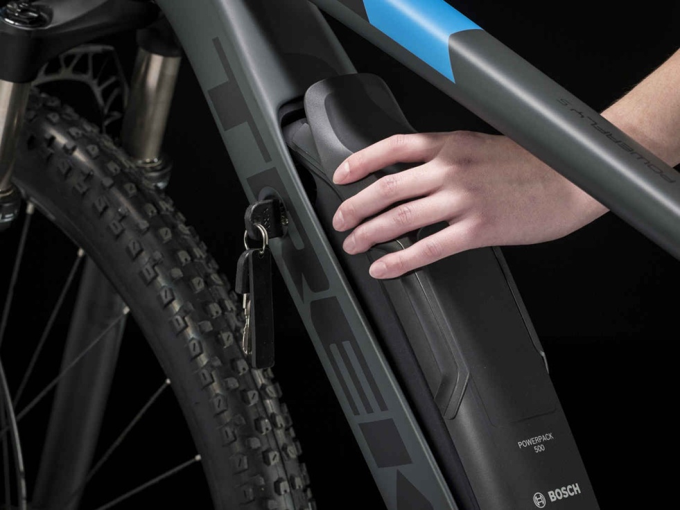 • Baterie s dlouhou životností upevněná na dolní rámové trubce je snadno snímatelná za účelem nabíjení.