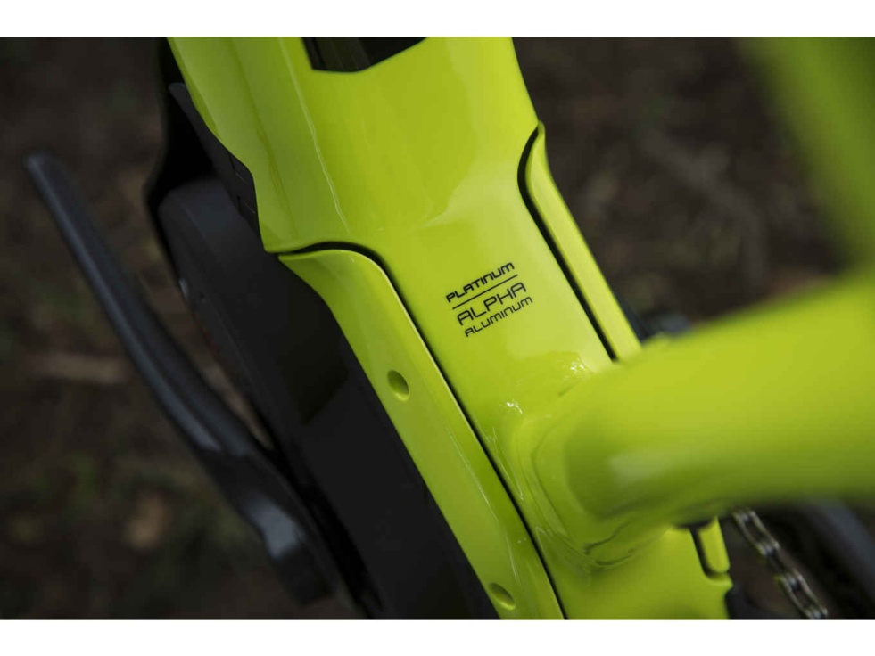 Odolný hliníkový rám Alpha Platinum, ve kterém je pro estetický vzhled a ochranu na trailu zcela usazena 500Wh baterie s dlouhým dojezdem, 250wattový motor Bosch Performance CX s podporou šlapání až do 25 km/h a ergonomický ovladač Bosch Purion. Dále 100mm vidlice RockShox Judy Silver TK, kola Bontrager Kovee 23 umožňující použití bezdušových plášťů, 10rychlostní řazení Shimano Deore a hydraulické diskové brzdy.