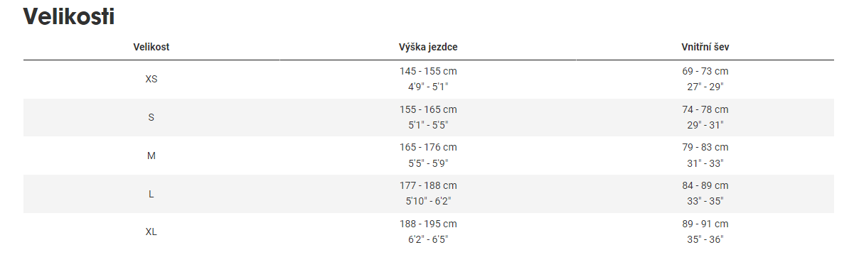 Maximální kompatibilní zdvih vidlice : 120 mm (délka osy ke korunce 540 mm), XS a S: 120 mm (délka osy ke korunce 520 mm)