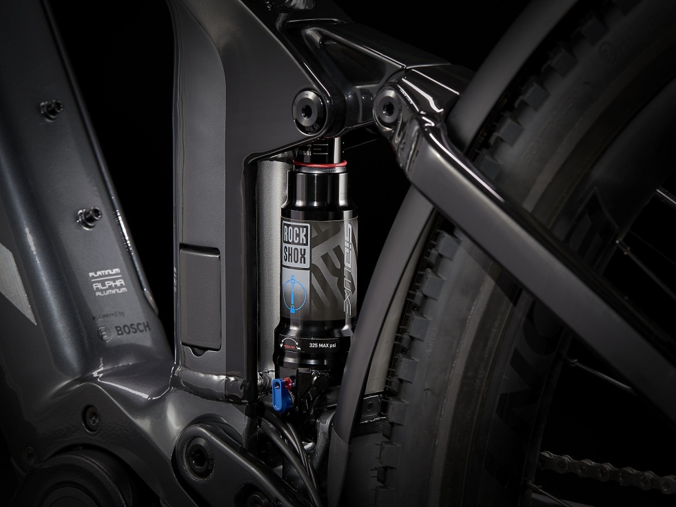 Odolný hliníkový rám se zabudovanou velkokapacitní 625Wh baterií, výkonný motor Bosch Performance CX (250 W, 75 Nm) s dopomocí až do 25 km/h a ovládání SmartphoneHub, které lze používat i s mobilním telefonem. Pak ještě 120mm odpruženou vidlici RockShox 35 Gold RL, tlumič RockShox SIDLuxe Select+ se zdvihem 110 mm, účinné čtyřpístkové hydraulické brzdy, kola Bontrager Line Comp 30, osazení Shimano XT s 12 rychlostmi a teleskopickou sedlovku na sjezdy.