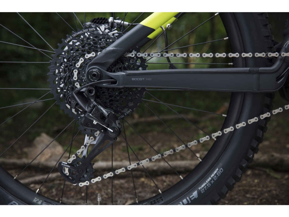 Odolný hliníkový rám Alpha Platinum, ve kterém je pro estetický vzhled a ochranu jízdy na trailu zcela usazena 500Wh baterie s dlouhým dojezdem, motor Bosch Performance CX a ovladač Purion. Dále vidlice RockShox Pike RC s předním a zadním zdvihem 130 mm s nesmírně hladkým tlumičem Charger2, přilnavé středně široké pláště 27,5+, teleskopická sedlovka Bontrager Line a řazení SRAM GX Eagle. Kola Bontrager Powerline Comp 40 umožňující použití bezdušových plášťů jsou určená pro výkonná horská elektrokola a čtyřpísté brzdy XT pro lepší brzdný účinek.