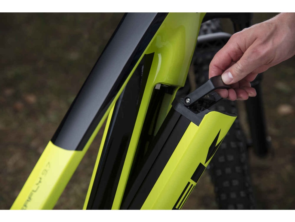 1. Systém vyjímatelných integrovaných baterií (RIB) je elegantní a jeho obsluha je snadná: baterie je zcela skrytá za trubkou, kde je chráněna, a lze ji snadno vyjmout bez použití nářadí. Současně umožňuje nainstalovat košík na vodu i na celoodpružených horských elektrokolech.