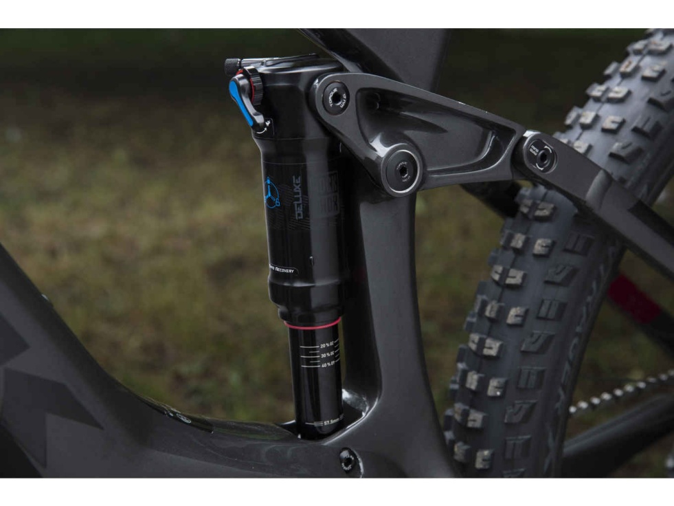 Hlavní rám z lehkého a odolného karbonu OCLV Mountain, ve kterém je pro estetický vzhled a ochranu na trailu zcela usazena 500Wh baterie s dlouhým dojezdem, 250wattový motor Bosch Performance CX s podporou šlapání až do 25 km/h a ergonomický ovladač Bosch Purion. Dále 160mm vidlice RockShox Yari RL, přilnavé středně silné 27,5+ pláště, kola Bontrager Line Comp 40 umožňující použití bezdušových plášťů s 54zubým nábojem Rapid Drive, teleskopická sedlovka, řazení 1x12 SRAM NX Eagle a 4pístové hydraulické diskové brzdy.