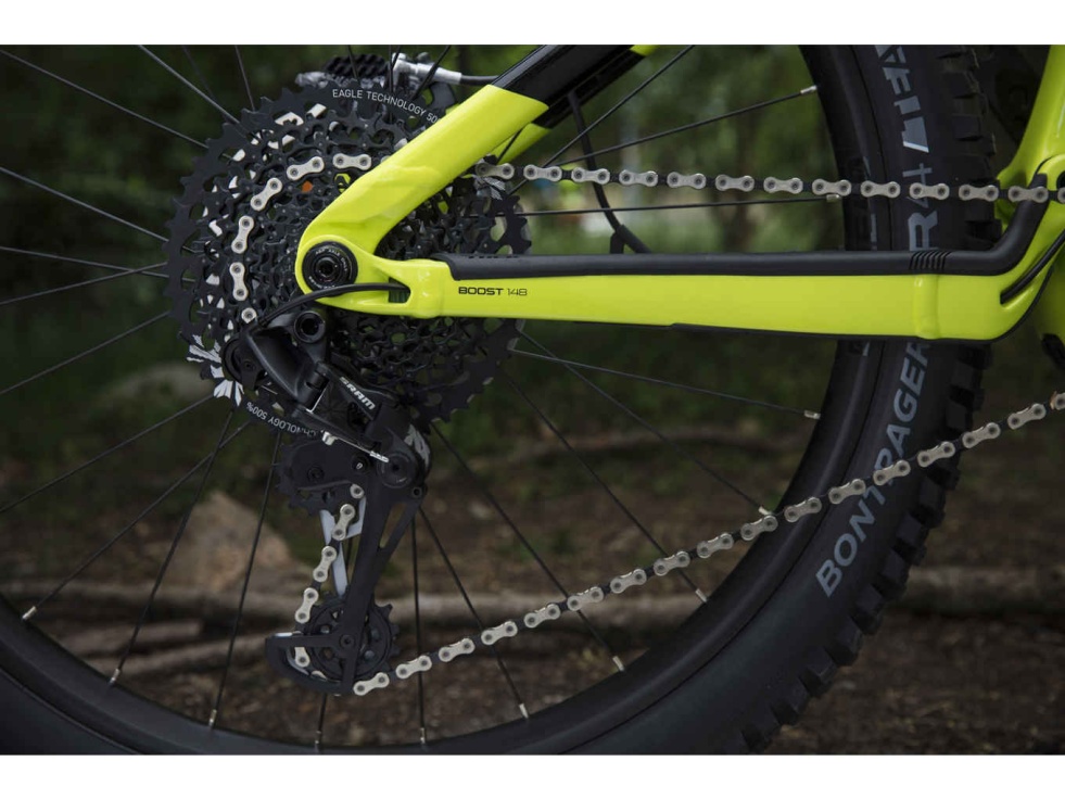 Hlavní rám z lehkého a odolného karbonu OCLV Mountain, ve kterém je pro estetický vzhled a ochranu na trailu zcela usazena 500Wh baterie s dlouhým dojezdem, 250wattový motor Bosch Performance CX s podporou šlapání až do 25 km/h a ergonomický ovladač Bosch Purion. Dále 160mm vidlice RockShox Yari RL, přilnavé středně silné 27,5+ pláště, kola Bontrager Line Comp 40 umožňující použití bezdušových plášťů s 54zubým nábojem Rapid Drive, teleskopická sedlovka, řazení 1x12 SRAM NX Eagle a 4pístové hydraulické diskové brzdy.
