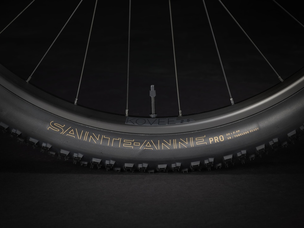 | Plášť | Bontrager Sainte-Anne Pro XR, možnost použití bezdušových plášťů, ze dvou směsí, aramidová patka, 60 tpi, 29 × 2,20 palce. |