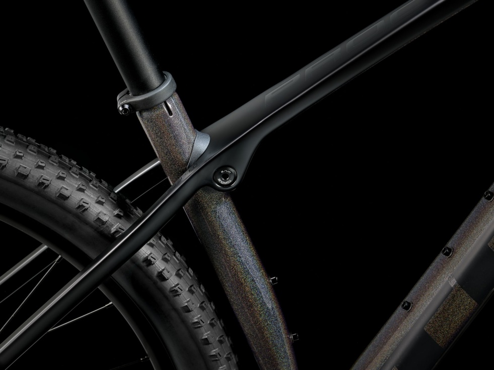 Lehký a tuhý karbonový rám s prvkem IsoSpeed vyhlazujícím nerovnosti, 100mm vidlice RockShox Judy SL s odpružením Solo Air a zamykáním TurnKey, pohon Shimano Deore 1x12 s hladkým řazením, účinné hydraulické kotoučové brzdy Shimano a rychlá 29palcová kola připravená na bezdušový systém.