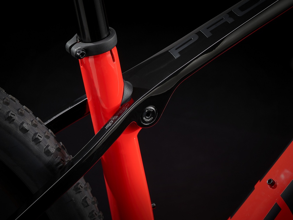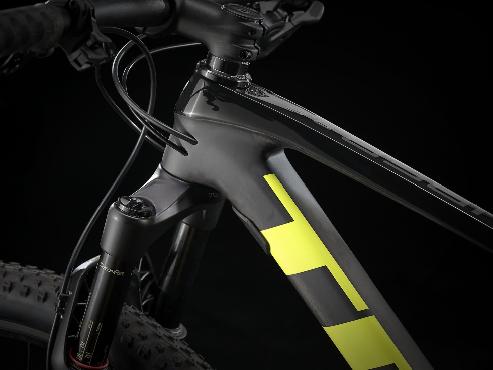 Lehký a tuhý karbonový rám s jedinečnými vlastnostmi tlumicího prvku IsoSpeed, 100mm vidlici RockShox Recon Gold RL s citlivým odpružením DebonAir a zamykáním z řídítek, lehčí sadu Shimano SLX s širokým rozsahem převodů, účinné hydraulické kotoučové brzdy Shimano a bezdušová 29palcová kola Bontrager Kovee Comp 23.