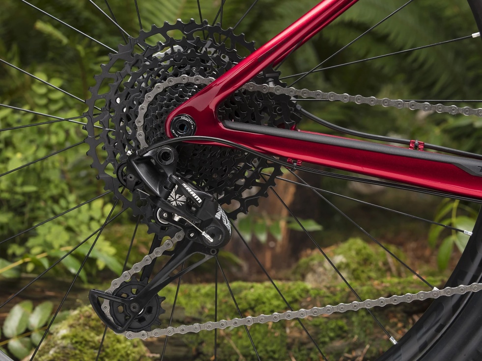 Rám z karbonu OCLV pro horská kola s jedinečnou výhodou pružícího prvku IsoSpeed pro hladkou jízdu, karbonová kola Bontrager Kovee Elite 23 umožňující použití bezdušových plášťů, pohon SRAM NX Eagle 1x12, klika Truvativ Stylo 6k Eagle, karbonová sedlovka, lehčí vidlice RockShox Reba RL s tlumičem Motion Control a zamykáním z řídítek.