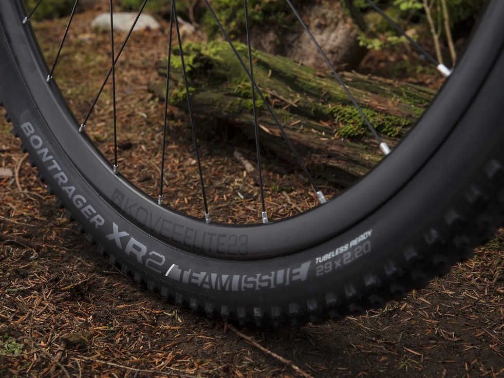 | Kola | Karbon Bontrager Kovee Elite 23 umožňující použití bezdušových plášťů, 54T Rapid Drive, přední Boost110, zadní Boost148, včetně pásků na bezdušové pláště, ventily se prodávají zvlášť |