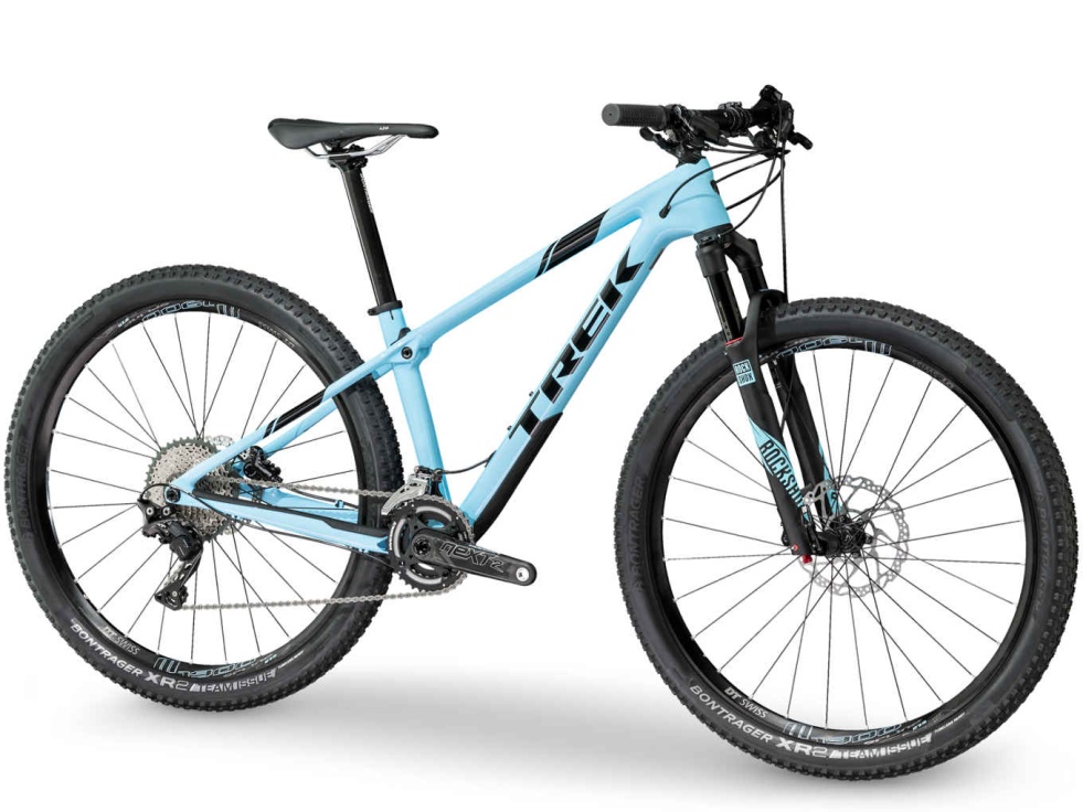 | Pláště | : Bontrager XR2 Team Issue, umožňující použití bezdušového kitu, 120 tpi, aramidová ochrana, 29×2,20" (13,5 a 15,5: 27,5×2,20") |