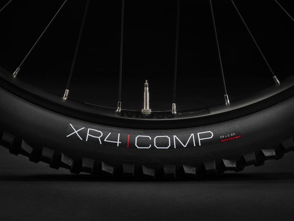 Plášť : Velikost: S, M, L, XL Bontrager XR4 Team Issue, možnost použití bezdušových plášťů, bočnice Inner Strength, aramidová patka, 120 tpi, 29 × 2,40 palce. / Velikost: S, M, L, XL Bontrager XR4 Comp, drátová patka, 30 tpi, 29 × 2,60 palce.