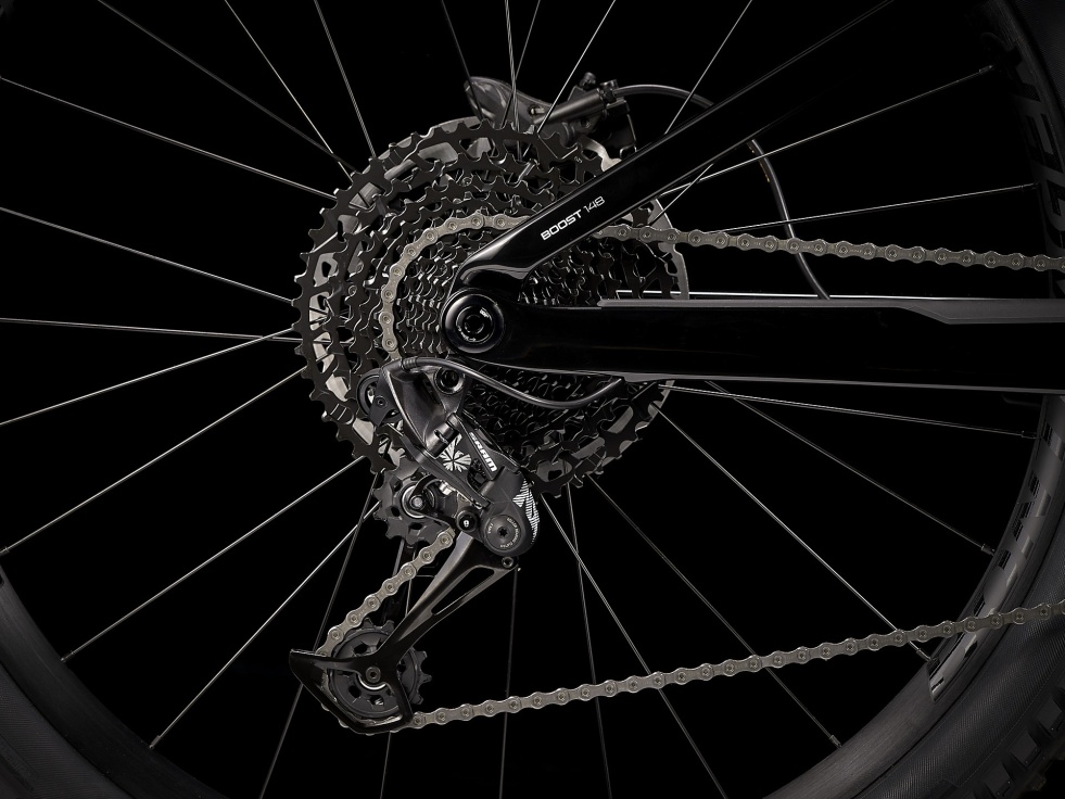 Rám z materiálu OCLV Mountain Carbon se zabudovanou 625Wh baterií, 160mm vidlici RockShox Yari RC, zadní tlumič RockShox Deluxe Select+ se zdvihem 150 mm, 250wattový motor Bosch Performance Line CX s dopomocí až do 25 km/h a ovládání Kiox. Sadu řazení 1x12 SRAM NX Eagle, teleskopickou sedlovku Bontrager Line, účinné čtyřpístkové brzdy na sebevědomé sjezdy a 29palcová kola Bontrager Line Comp 30 připravená na bezdušový systém (včetně tmelu).
