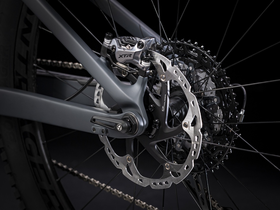 Lehký a odolný hlavní rám z karbonu OCLV pro horská kola se slitinovými vzpěrami, v němž je zcela usazena 625Wh baterie pro elegantní vzhled a ochranu na trailu, 160mm vidlice RockShox Lyrik Ultimate s tlumičem Charger 2 RC2, 150mm zadní zdvih s tlumičem RockShox Deluxe RT3 a tlumením RE:aktiv s Thru Shaft značky Trek, výkonný nový 250W motor Bosch Performance Line CX, který pomáhá udržovat rychlost až 25 km/h, a ovladač Kiox. Pohon 1x12 Shimano XTR, teleskopická sedlovka Bontrager Line Elite, 4pístkové brzdy, karbonová řídítka a 29palcová karbonová kola Bontrager Line 30 s plášti Bontrager SE5 Team Issue.