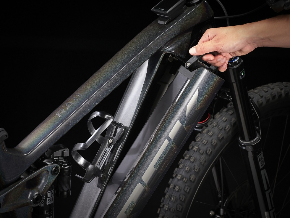 5. Systém vyjímatelné integrované baterie (RIB) Trek je elegantní a velmi praktický. Baterie je skrytá v rámu, který ji zároveň chrání. Snadno ji vyjmete bez nářadí a na dolní trubku můžete namontovat košík na lahev.