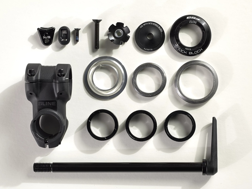 | Hlavové složení | Integrovaná ochrana Knock Block, poloměr 58 stupňů, zapouzdřené středové ložisko, horní 1–1/8 palce, spodní 1,5 palce. |