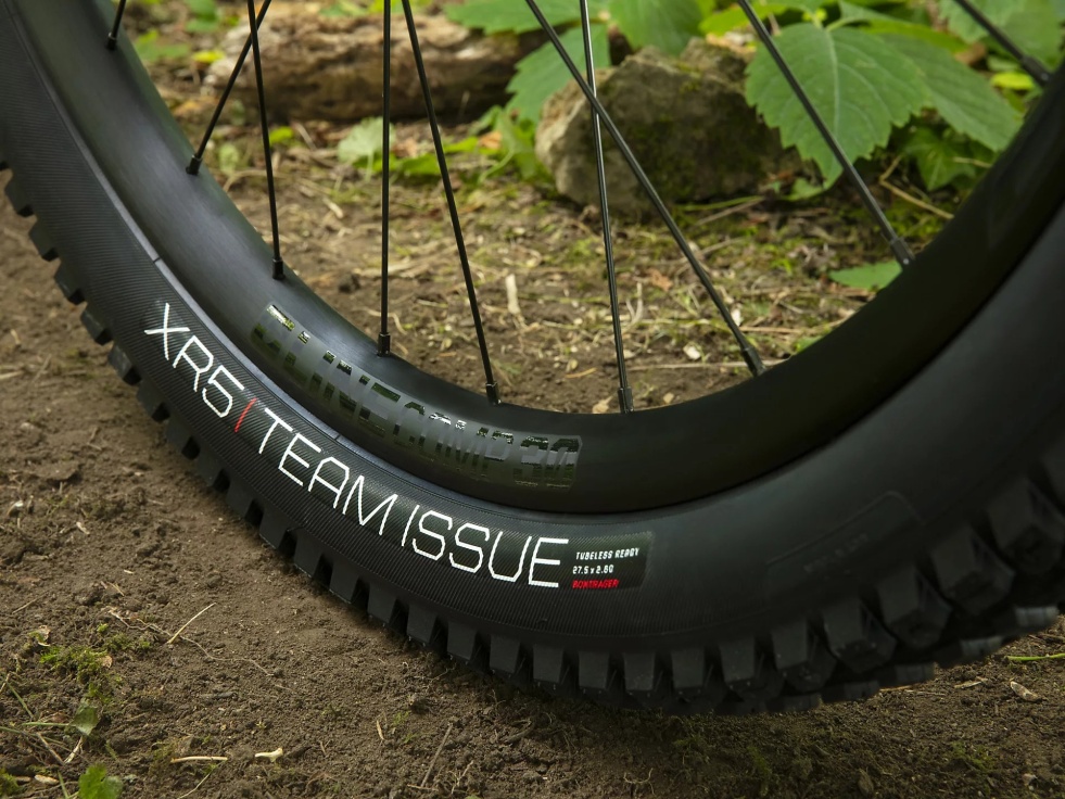 | Tires | Bontrager XR5 front, XR4 rear, Team Issue, Tubeless Ready, Inner Strength sidewall, aramid bead, 120 tpi, 27.5×2.60" |