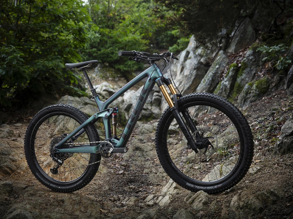 Tires Bontrager SE5 front, SE4 rear, Team Issue, Tubeless Ready, Core Strength sidewall, aramid bead, 60 tpi, 27.5×2.60"