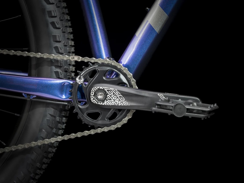 Dámské kolo Roscoe 8 je osazeno pevným hliníkovým rámem Alpha Gold s interním vedením lanek pro ochranu a elegantní vzhled, 27,5+ plášti na ráfcích Bontrager Line, které umožňují použití bezdušových plášťů pro vyšší jistotu, a 120mm vidlicí RockShox 35 Gold s tlumením Motion Control a zamykáním. Dále má teleskopickou sedlovku, pohon SRAM NX 1x12, hydraulické kotoučové brzdy Shimano a sedlo navržené specificky pro ženy.