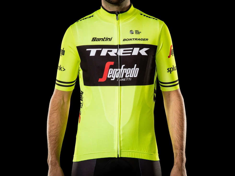 Oficiální týmové oblečení vyrábí Santini s týmovým logem Trek-Segafredo hrdě umístěném na viditelném místě.