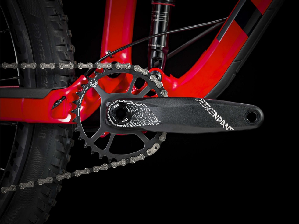 Odolný hliníkový rám Alpha Platinum na traily, 160mm vidlice RockShox Yari RC, tlumič RockShox Deluxe se zadním zdvihem 150 mm a nesmírně hbitým tlumicím prvkem RE:aktiv s pevnou osou Thru Shaft značky Trek. Dále je vybaveno pohonem 1x12 SRAM GX Eagle, teleskopickou sedlovkou Bontrager Line a koly Bontrager Line Comp 30 s 54zubým zadním nábojem Rapid Drive pro rychlou aktivaci.