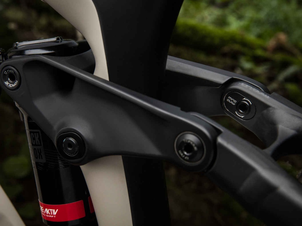 Rám Hlavní karbonový rám OCLV Mountain Carbon a 1× specifické slitinové vzpěry, ABP, Boost148, ochrana proti protočení řidítek Knock Block, EVO link, kónická hlavová trubka E2, Mino Link, vnitřní vedení kabeláže Control Freak, ochrana Carbon Armor, ISCG 05, geometrie G2, zdvih 150 mm