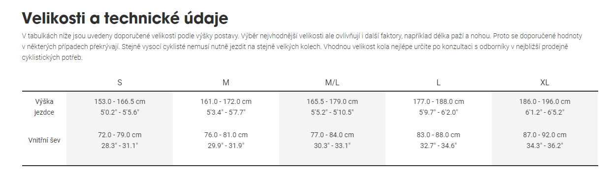 | Hmotnostní limit | Kolo má maximální celkový hmotnostní limit 136 kg (kombinovaná hmotnost kola, jezdce a nákladu). |