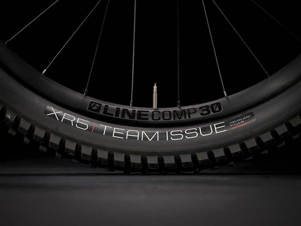 | Plášť | Bontrager XR5 Team Issue, možnost použití bezdušových plášťů, aramidová patka, 120 tpi, 29 × 2,50 palce. |