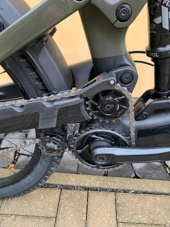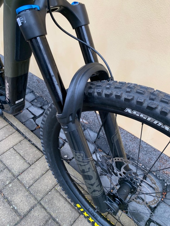 | Rám | Karbon OCLV pro horská kola, odmontovatelná baterie, vysoký hlavní čep, vodicí kladka, nastavitelné hlavové složení, nastavitelné dávkování brzdné síly, integrovaná ochrana rámu, vnitřní vedení, hořčíkový kolébkový spoj, horní úchyt vodítka řetězu, řetězová linka 55 mm, ABP, UDH, pevná osa 148 × 12 mm, zdvih 170 mm |
