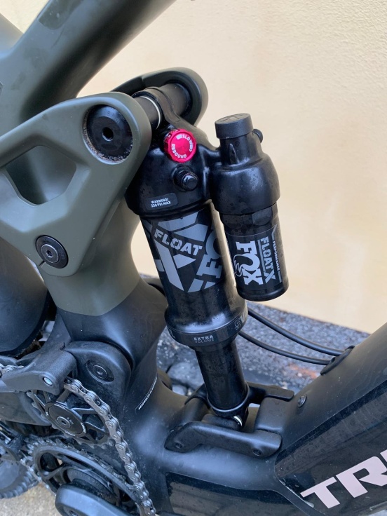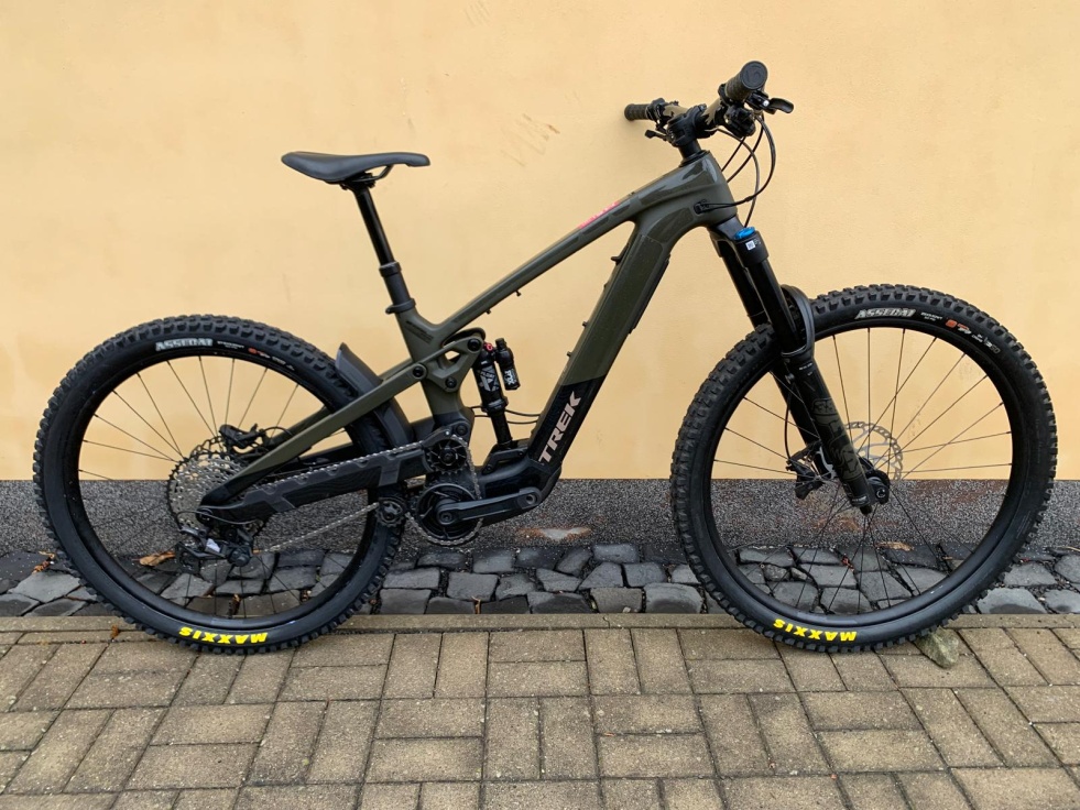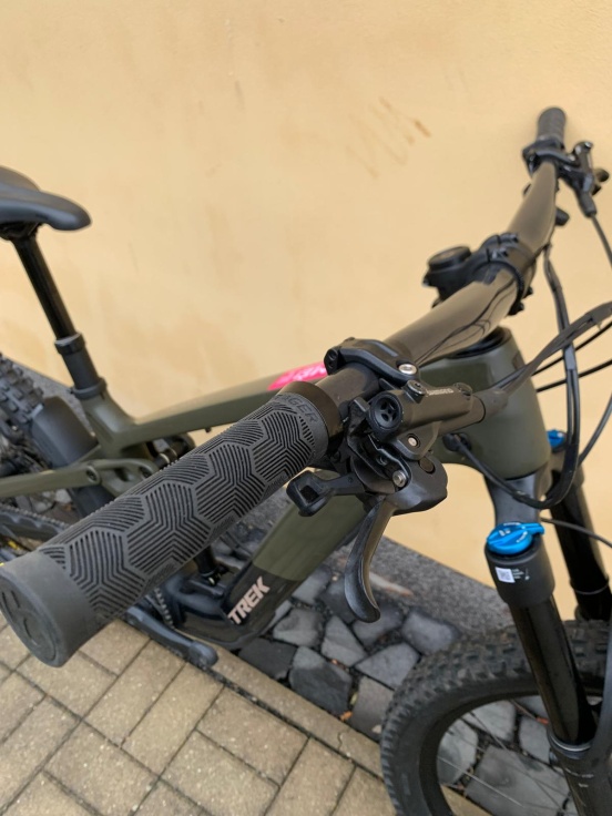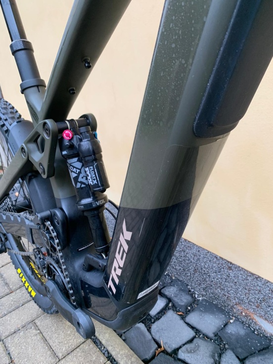 Rám z karbonu OCLV pro horská kola s odpružením s vysoko položeným čepem a tichým, ale výkonným motorem TQ HPR50 (50 Nm, 250 W) s 580Wh baterií. 170mm přední a zadní zdvih díky vidlici FOX Rhythm 38 se vzduchovou pružinou Float EVOL a tlumením GRIP a tlumič FOX Performance Float X. Tuhá kola Bontrager Line Comp 30 umožňující použití bezdušových plášťů (29palcové přední/27,5palcové zadní) pro snadné zvládání náročného terénu, teleskopická sedlovka Bontrager Line a pohon Shimano SLX/XT.