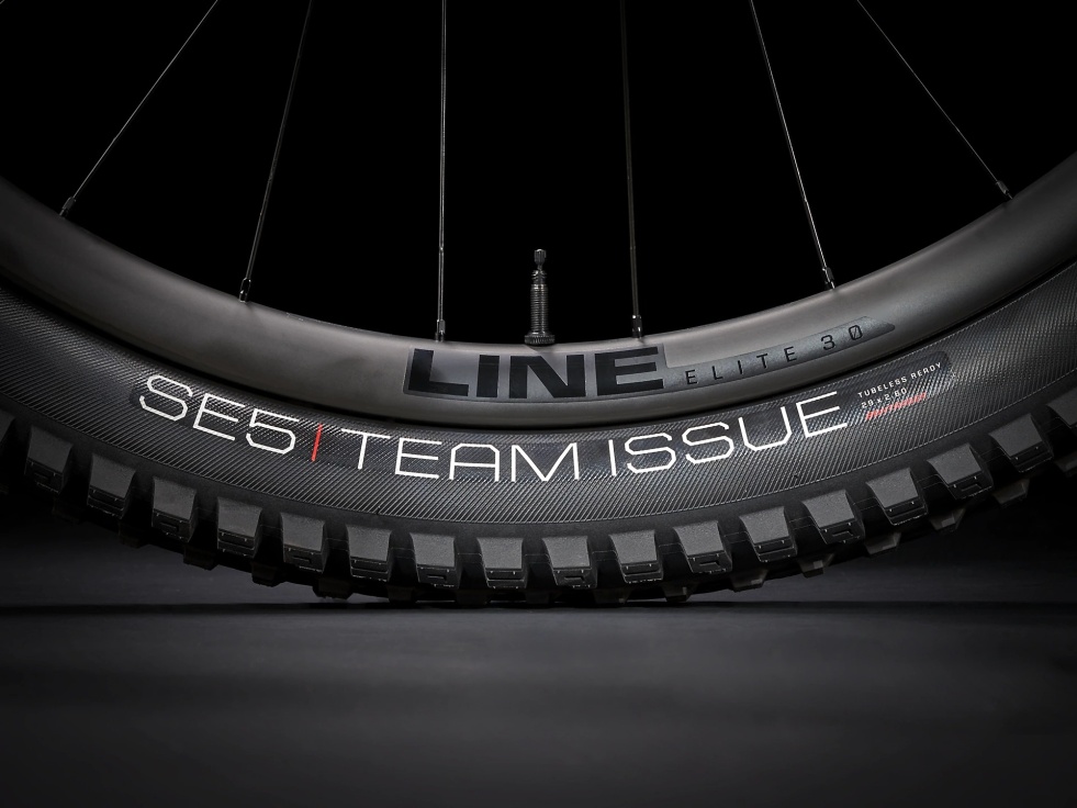 Plášť : Size: S , M , ML , L , XL / Bontrager SE4 Team Issue, možnost použití bezdušových plášťů, bočnice Core Strength, aramidová patka, 60 tpi, 29 × 2,40 palce. / Size: S , M , ML , L , XL Bontrager SE5 Team Issue, možnost použití bezdušových plášťů, bočnice Core Strength, aramidová patka, 60 tpi, 29 × 2,60 palce.