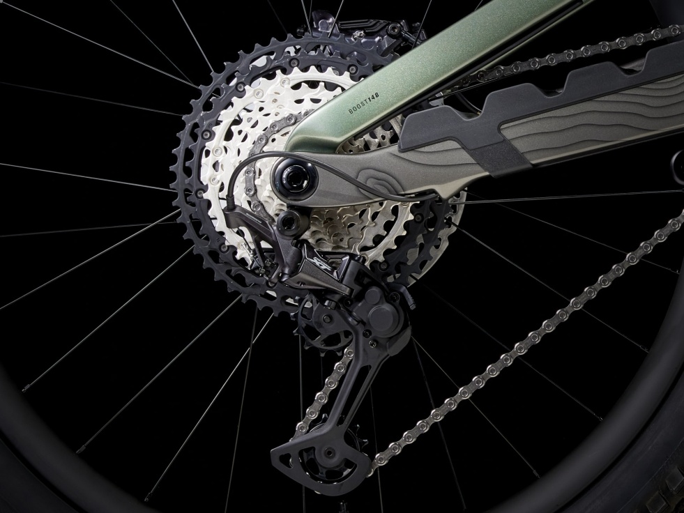 Odpružený rám z karbonu OCLV pro horská kola s vysoko umístěným čepem a vnitřním úložným prostorem. 170mm zdvih vpředu i vzadu, vidlice RockShox ZEB Select+ s pružinou DebonAir a tlumičem Charger 3 RC2 a zadní tlumič RockShox Super Deluxe Select+. Pohon Shimano XT s širokou škálou převodů na výjezdy do kopců, teleskopická sedlovka Bontrager Line a kombinace dvou velikostí karbonových kol Bontrager Line Elite 30 (29palcové vpředu a 27,5palcové vzadu), která jsou osazena náboji Rapid Drive a umožňují použití bezdušových plášťů.