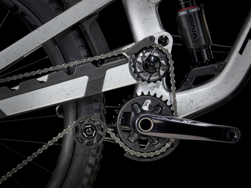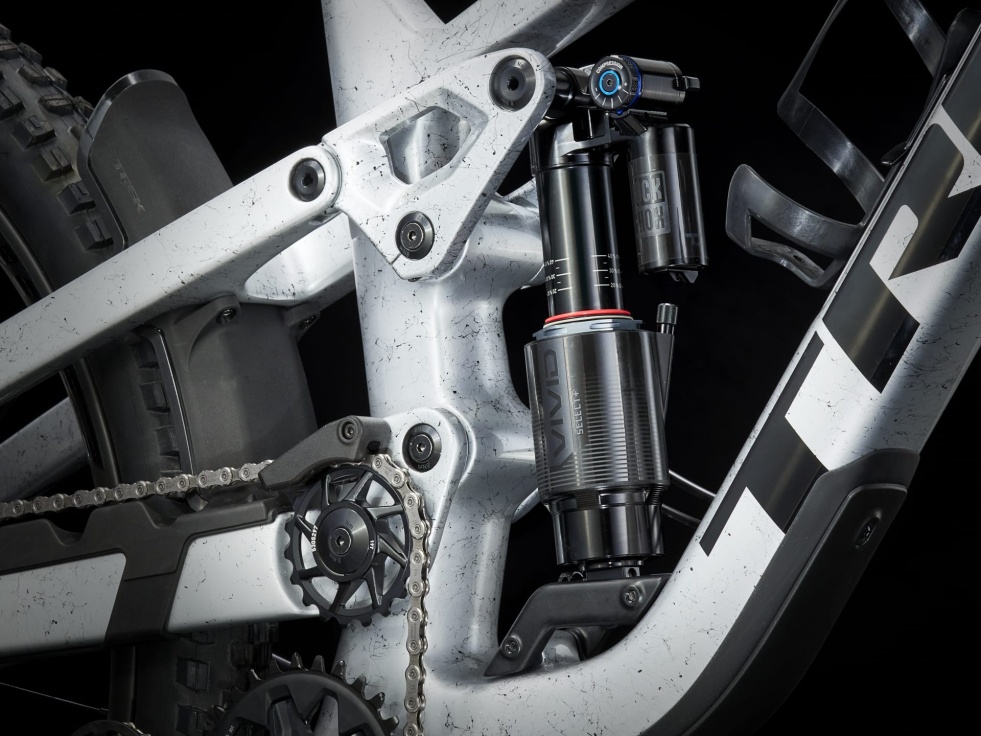Odpružený rám z karbonu OCLV pro horská kola s vysoko umístěným čepem a vnitřním úložným prostorem. 170mm zdvih vpředu i vzadu, vidlice RockShox ZEB Select+ s pružinou DebonAir a tlumičem Charger 3 RC2 a zadní tlumič RockShox Super Deluxe Select+. Pohon Shimano XT s širokou škálou převodů na výjezdy do kopců, teleskopická sedlovka Bontrager Line a kombinace dvou velikostí karbonových kol Bontrager Line Elite 30 (29palcové vpředu a 27,5palcové vzadu), která jsou osazena náboji Rapid Drive a umožňují použití bezdušových plášťů.