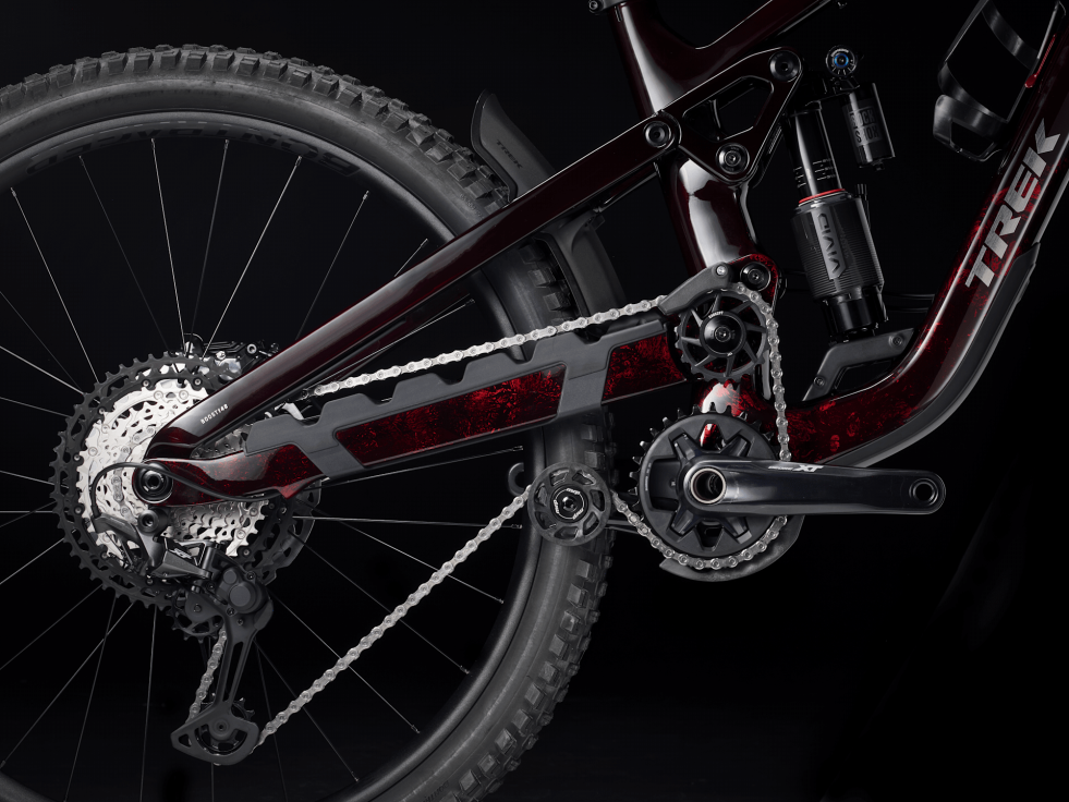 Odpružený rám z karbonu OCLV pro horská kola s vysoko umístěným čepem a vnitřním úložným prostorem. 170mm zdvih vpředu i vzadu, vidlice RockShox ZEB Select+ s pružinou DebonAir a tlumením Charger 3 RC2 a tlumič RockShox Vivid Select+. Pohon Shimano XT se širokou škálou převodů na výjezdy do kopců, teleskopická sedlovka Bontrager Line a kombinace dvou velikostí kol Bontrager Line Comp 30 (29palcové vpředu a 27,5palcové vzadu), která jsou osazena 108 náboji Rapid Drive a umožňují použití bezdušových plášťů.