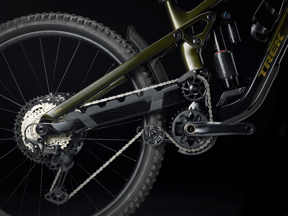 Odpružený rám z karbonu OCLV pro horská kola s vysoko umístěným čepem a vnitřním úložným prostorem. 170mm zdvih vpředu i vzadu, vidlice RockShox ZEB Select+ s pružinou DebonAir a tlumením Charger 3 RC2 a tlumič RockShox Vivid Select+. Pohon Shimano XT se širokou škálou převodů na výjezdy do kopců, teleskopická sedlovka Bontrager Line a kombinace dvou velikostí kol Bontrager Line Comp 30 (29palcové vpředu a 27,5palcové vzadu), která jsou osazena 108 náboji Rapid Drive a umožňují použití bezdušových plášťů.