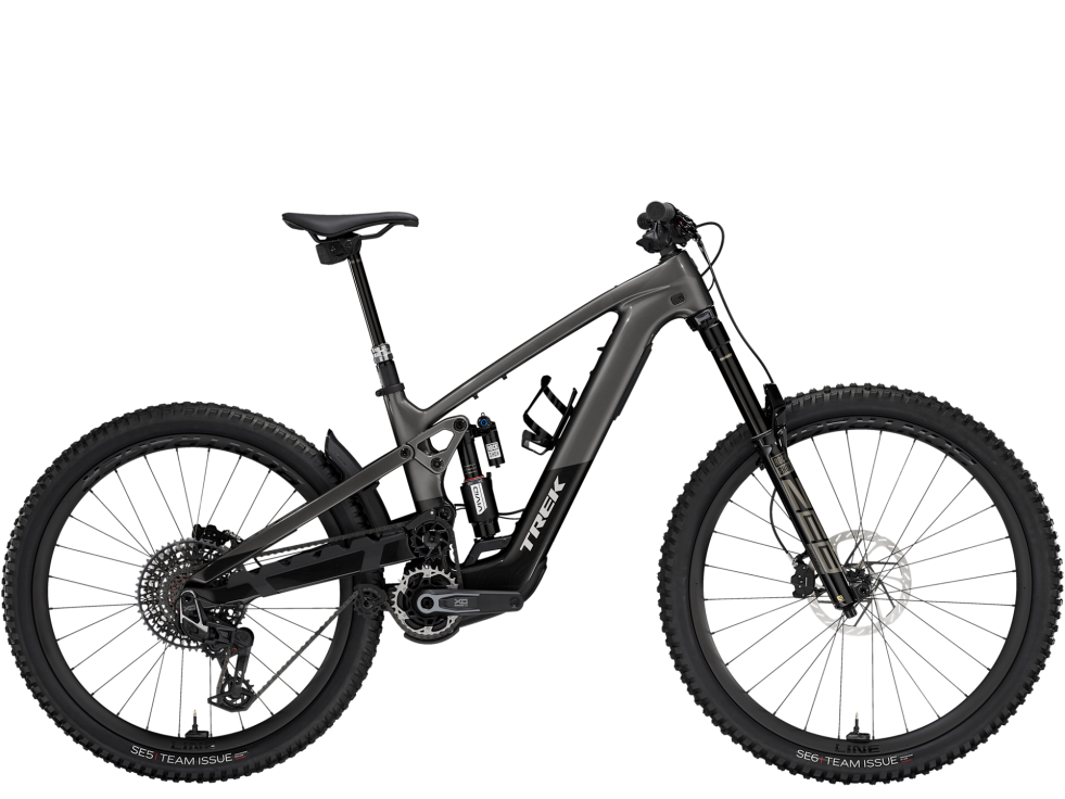 Rám z karbonu OCLV pro horská kola s odpružením s vysoko umístěným čepem a tichým, ale výkonným motorem TQ HPR50 (50 Nm, 250 W) s 580Wh baterií. 170mm zdvih vpředu i vzadu díky vidlici RockShox ZEB Ultimate Deluxe s pružinou DebonAir a tlumením Charger 3.1 a tlumičem RockShox Vivid Ultimate. Kola Bontrager Line Pro 30 z karbonu OCLV pro horská kola (29palcové přední/27,5palcové zadní) pro hladký přejezd náročného terénu, teleskopická sedlovka RockShox Reverb, 4pístkové brzdy SRAM Maven Silver a bezdrátové elektronické řazení SRAM X0 AXS transmission direct mount.